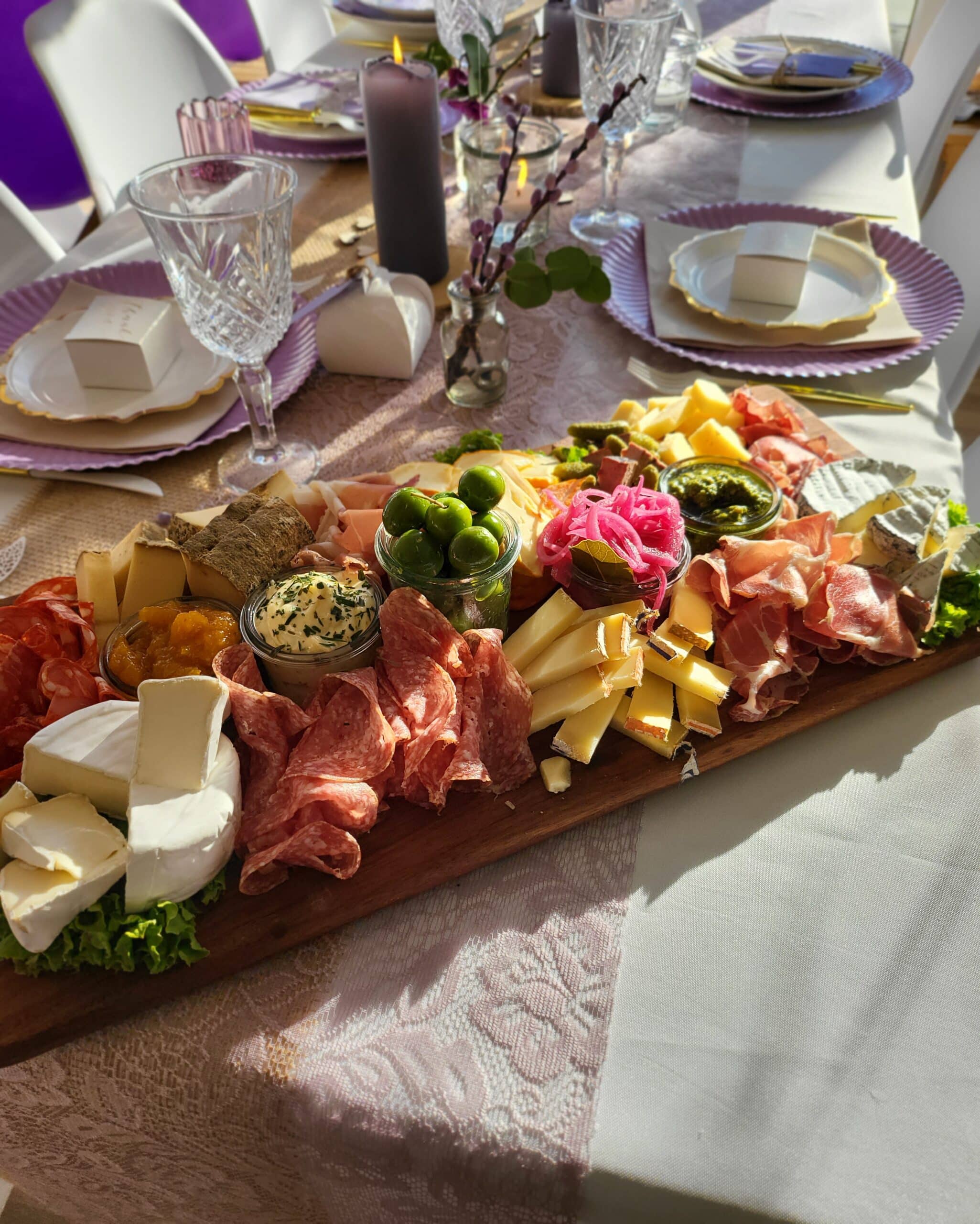 Eksklusiv gourmetanretning med minimum 5 oste i verdensklasse, luksuriøst charcuteri og hjemmelavet tilbehør – smukt anrettet på fad og klar til servering.
